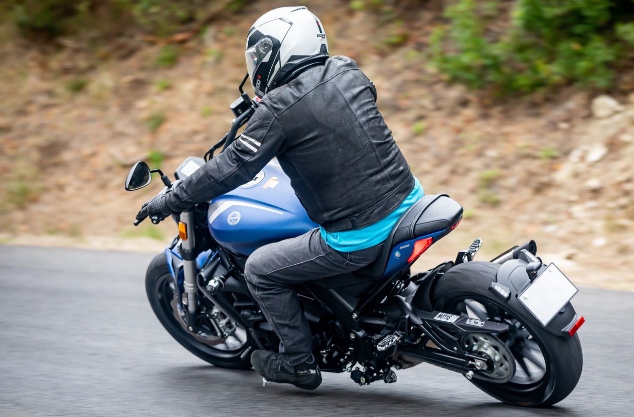 Benelli 502 C ведёт себя предсказуемо и уверенно. В поворотах радует стабильностью — спасибо стальной трубчатой раме и грамотной развесовке. Подвеска настроена так, чтобы дарить комфорт на каждодневной езде, но при этом оставлять запас на более активные манёвры. Конечно, если увлечься и закладывать виражи по-спортивному, подножки довольно быстро напомнят о своём существовании — но это уже особенности жанра.
