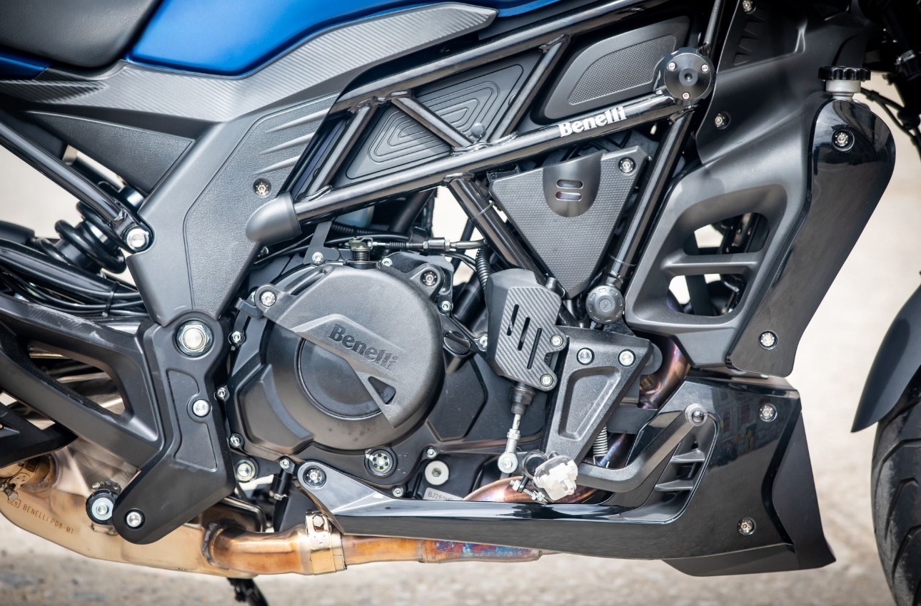 Сердце 502 С — двухцилиндровый мотор объёмом 500 куб. см. Он хорошо знаком по другим моделям Benelli — TRK 502 и Leoncino 500, но в этом мотоцикле он звучит и ощущается иначе. Здесь двигатель словно сбрасывает излишнюю серьёзность и работает особенно гладко, мягко, дружелюбно.